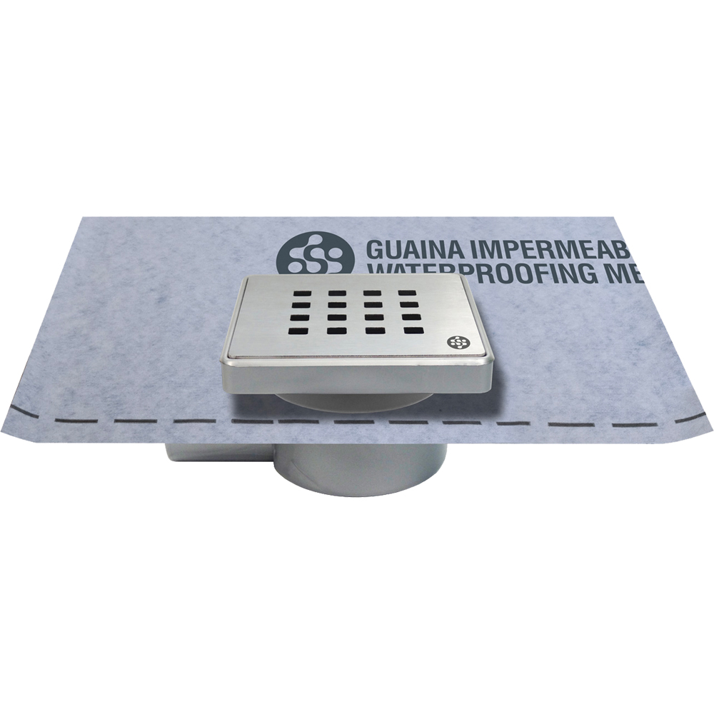 il corpo sifonato, il foglio di guaina impermeabilizzante con adattatore incorporato, la vaschetta, il filtro e la griglia.