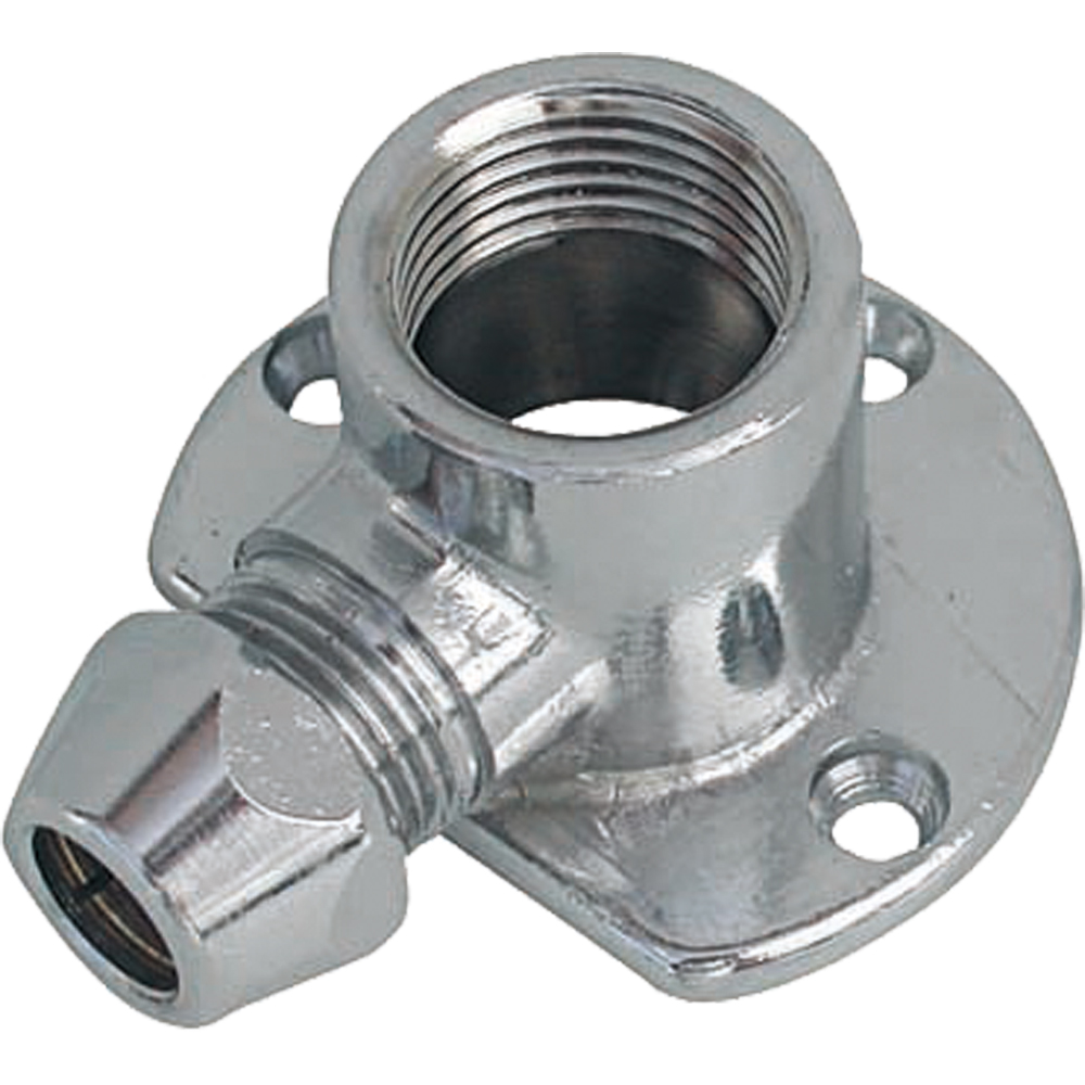 CURVA FEMMINA PER TUBETTO RAME CON FLANGIA IN OTTONE CROMATO F1/2" x Ø12 CURVA FEMMINA PER TUBETTO RAME...