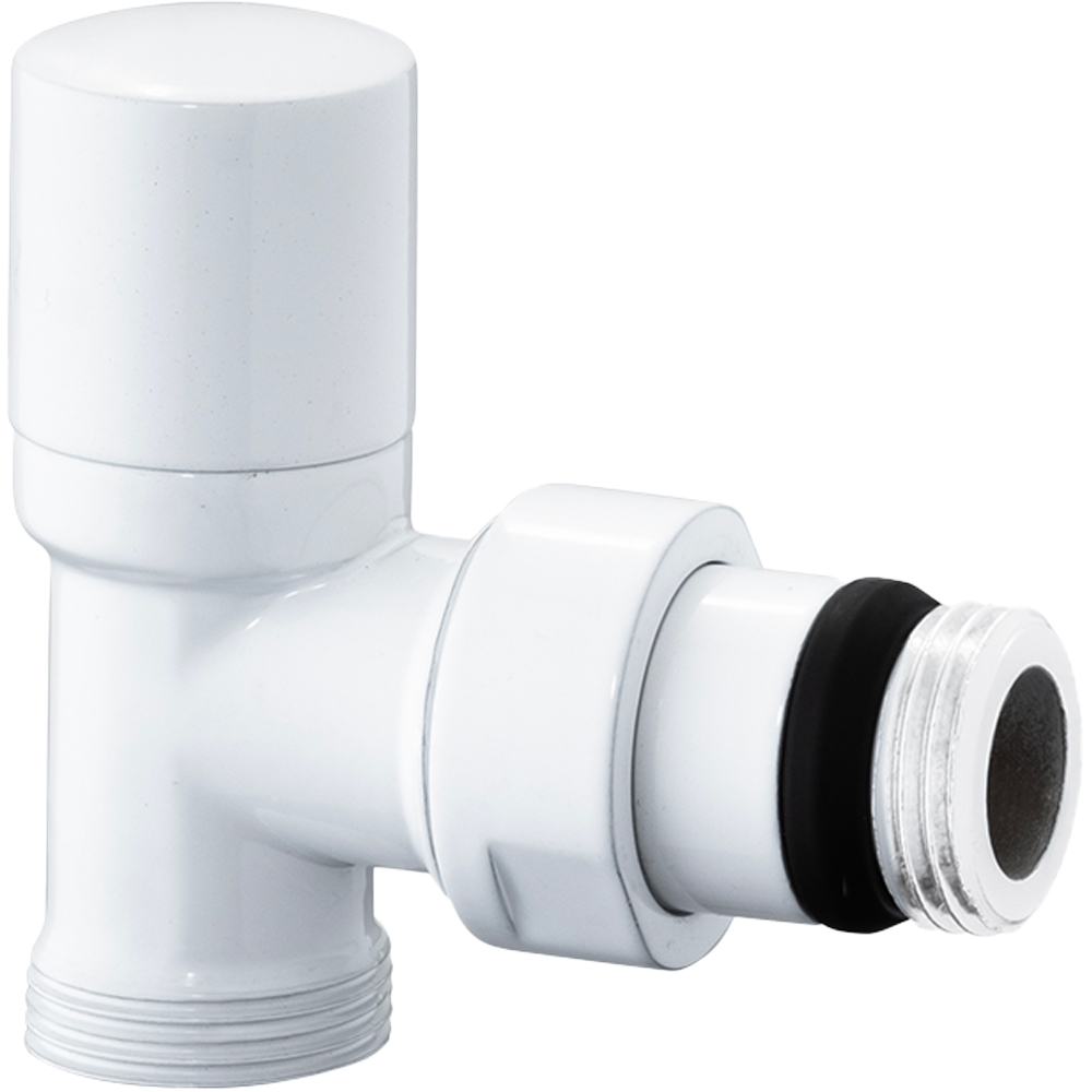 Da abbinare con valvola ns codice 08016. Adattatori ns codice 08020 e 08022. Detentore micrometrico a squadra per il collegamento di tubo rame, multistrato e pex. Corredato di bocchettone antisgocciolamento. Finitura bianca.