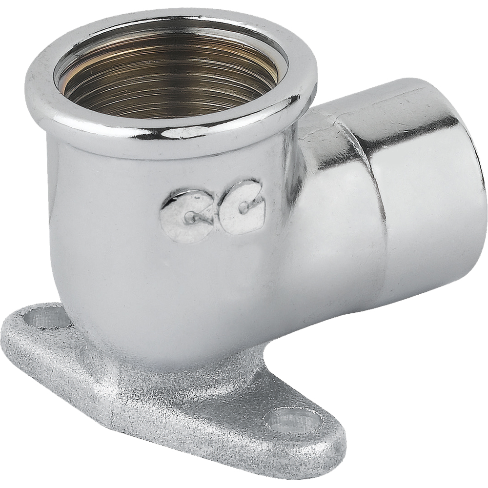 GOMITO FEMMINA/FEMMINA CON FLANGIA IN OTTONE CROMATO 1/2″ x 1/2″