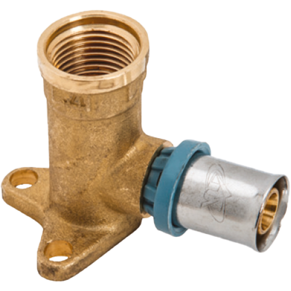 GOMITO FEMMINA FLANGIATO A PRESSARE PER TUBO MULTISTRATO UNIDELTA Ø16 x 1/2″ – H.53 mm