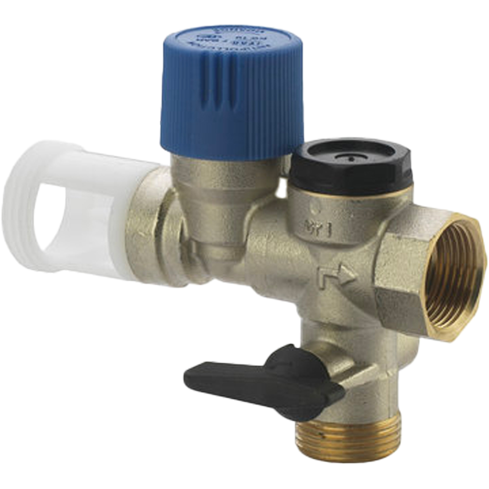 Gruppo di sicurezza per scaldacqua ad accumulo 3/4″. Certificato ACS. Temperatura max di esercixio 120ø C. Pressione di taratura della valvola di sicurezza: 7 bar.