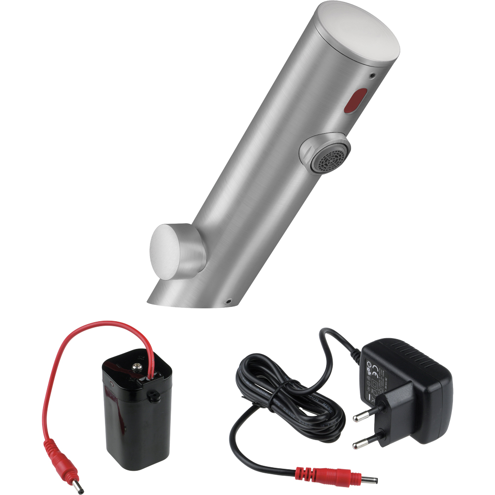 MISCELATORE ELETTRONICO A FOTOCELLULA PER LAVABO IN ACCIAIO SPAZZOLATO Batterie 4 x 1,5V (AA)