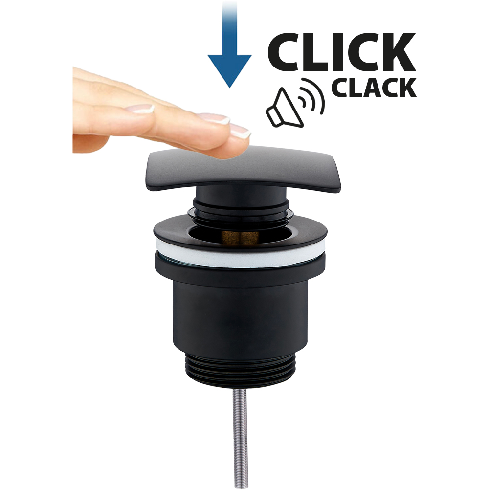PILETTA CLICK CLACK QUADRATA PER LAVABO NERO OPACO 1"1/4 x 68 mm PILETTA CLICK CLACK QUADRATA P...