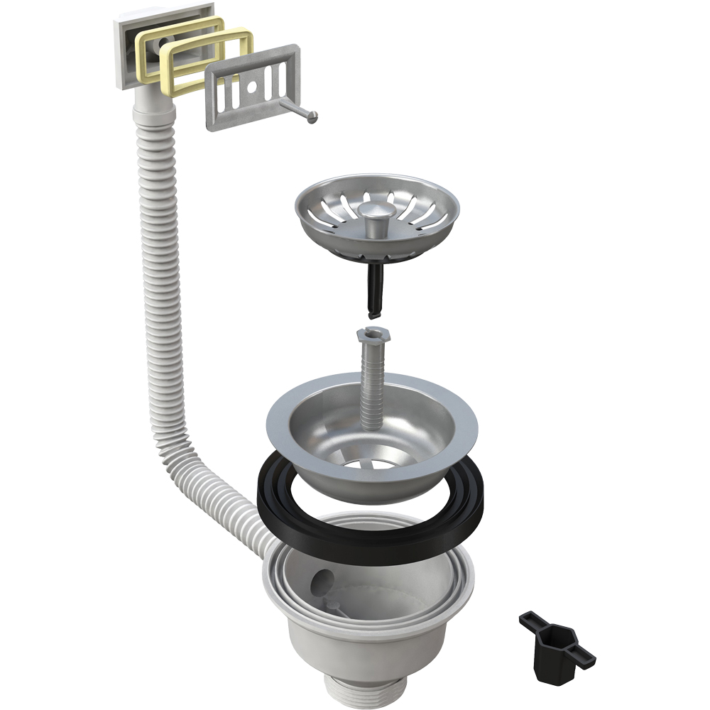 PILETTA "HOOKFLEX" PER LAVELLO INOX CON TROPPO PIENO A GRIGLIA RETTANGOLARE 1"1/2 x Ø110 mm