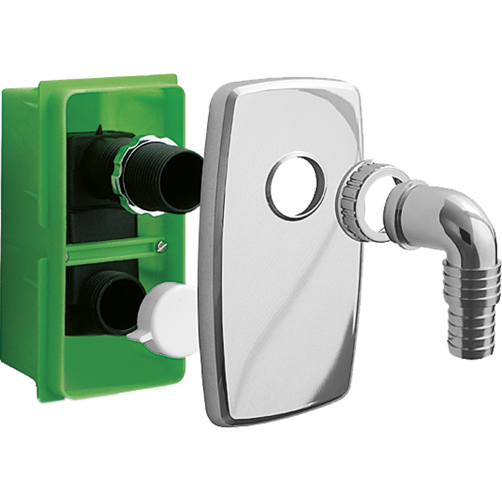 SIFONE INCASSO LAVATRICE O LAVASTOGLIE "COMPACT" CON BOX Placca Cromata SIFONE INCASSO LAVATRICE O LAV...