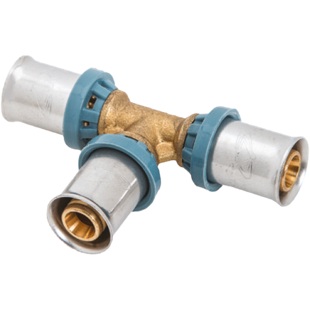 TEE A PRESSARE PER TUBO MULTISTRATO UNIDELTA Ø16 x Ø16 x Ø16