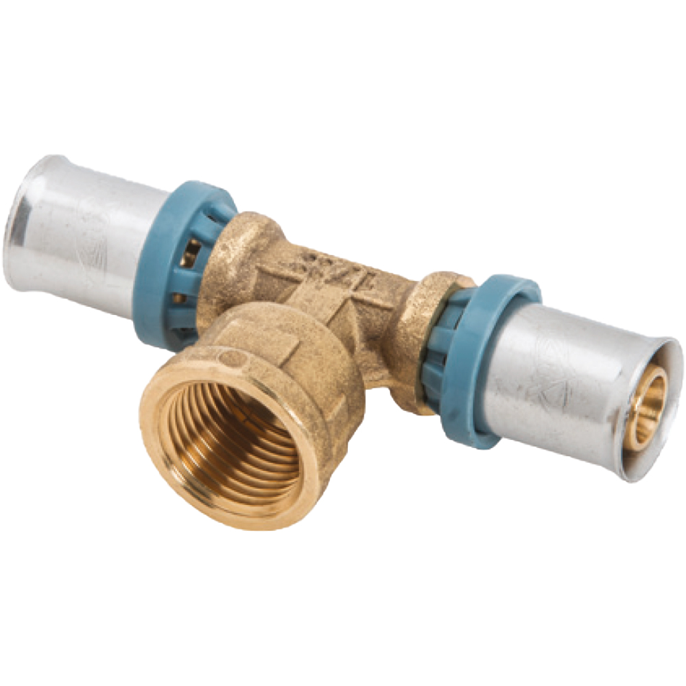 TEE FEMMINA A PRESSARE PER TUBO MULTISTRATO UNIDELTA Ø16 x 1/2″ x Ø16